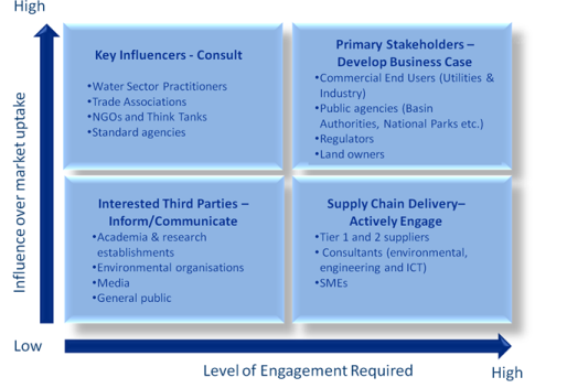 WaterInnEU will provide specialist resources to actively facilitate the brokering of opportunities between the supply chain, the end user and the platform (and ultimately access to the originators of the tools as appropriate). These services are a unique feature of the proposition, providing active mechanisms for engaging the key market players and stakeholders, informing the development of market ready propositions, and ultimately facilitating exploitation of the tools and products. A menu of services will be developed to meet the specific needs of the platform, and will range from ‘light touch’ mentoring and facilitation through to direct ‘hands on’ support.